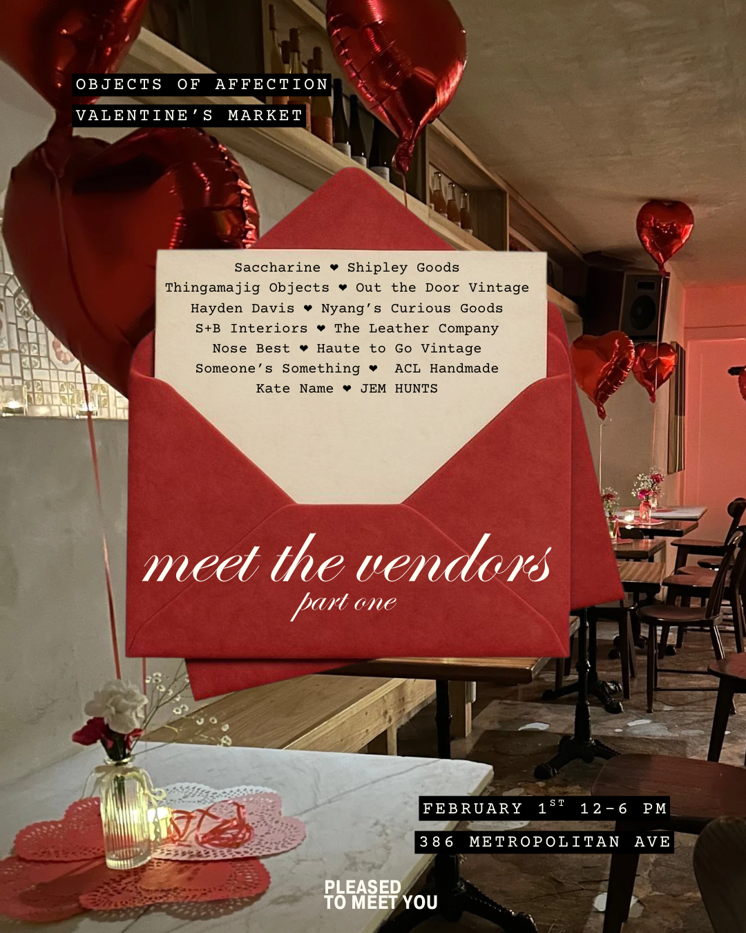 For Pleased to Meet You, I lead the full content and event marketing strategy across Instagram and digital touchpoints. I develop all visual assets and promotional materials, interview and spotlight vendors, and design event flyers and branded graphics to build anticipation and drive attendance.
